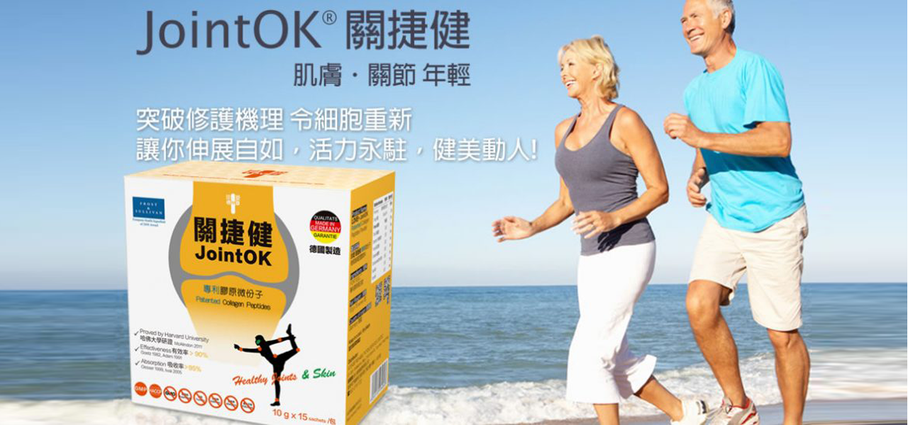 膠原佔人體蛋白質約35%,是構成軟骨、皮膚、肌腱、韌帶、骨骼、血管和臟腑結締組織的主要物質。關捷健® 是100%德國研製的專利活性膠原蛋白肽微份子專方,既是膠原蛋白的組成件,又類似軟骨代謝物,配方獨特,成份天然,經美國哈佛大學醫學院和德國數十年至今多項臨床研究證明: 吸收率95%並直達組織,提供營養及啟動細胞令組織自然增長再生,安全有效地保護和修補損耗關節及週邊結締組織,減緩退化,舒緩痛楚,促進關節健康,更可幫助肌膚保濕和回復彈性。關捷健®激活細胞,深入強效修護肌膚關節,擊退肌膚鬆弛皺紋、關節咯咯聲和僵硬等歲月痕跡,抵抗衰老,延展健康活力。此食品或有助於舒筋活絡和修護肌膚,既適合關注關節痛、頸..